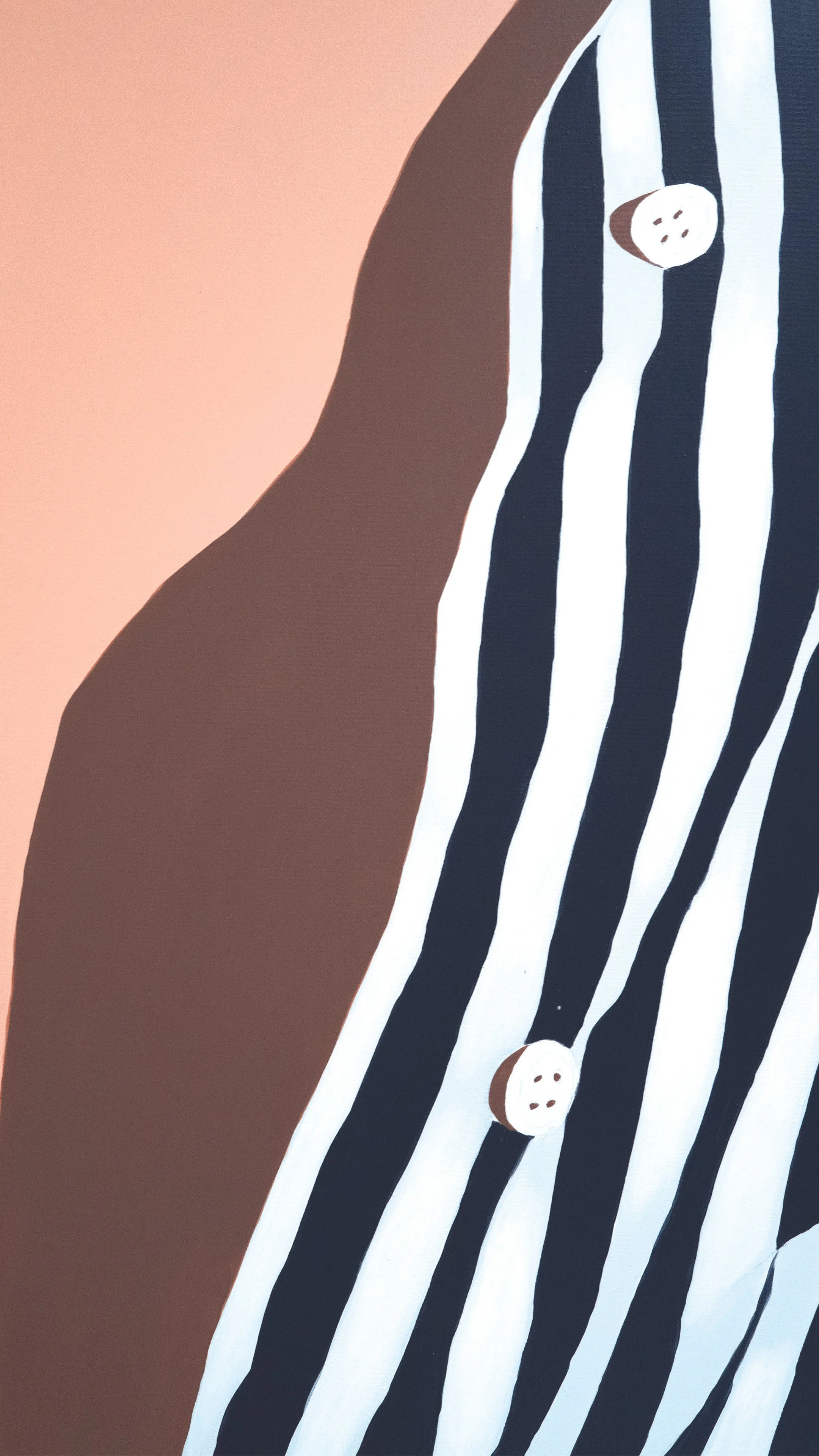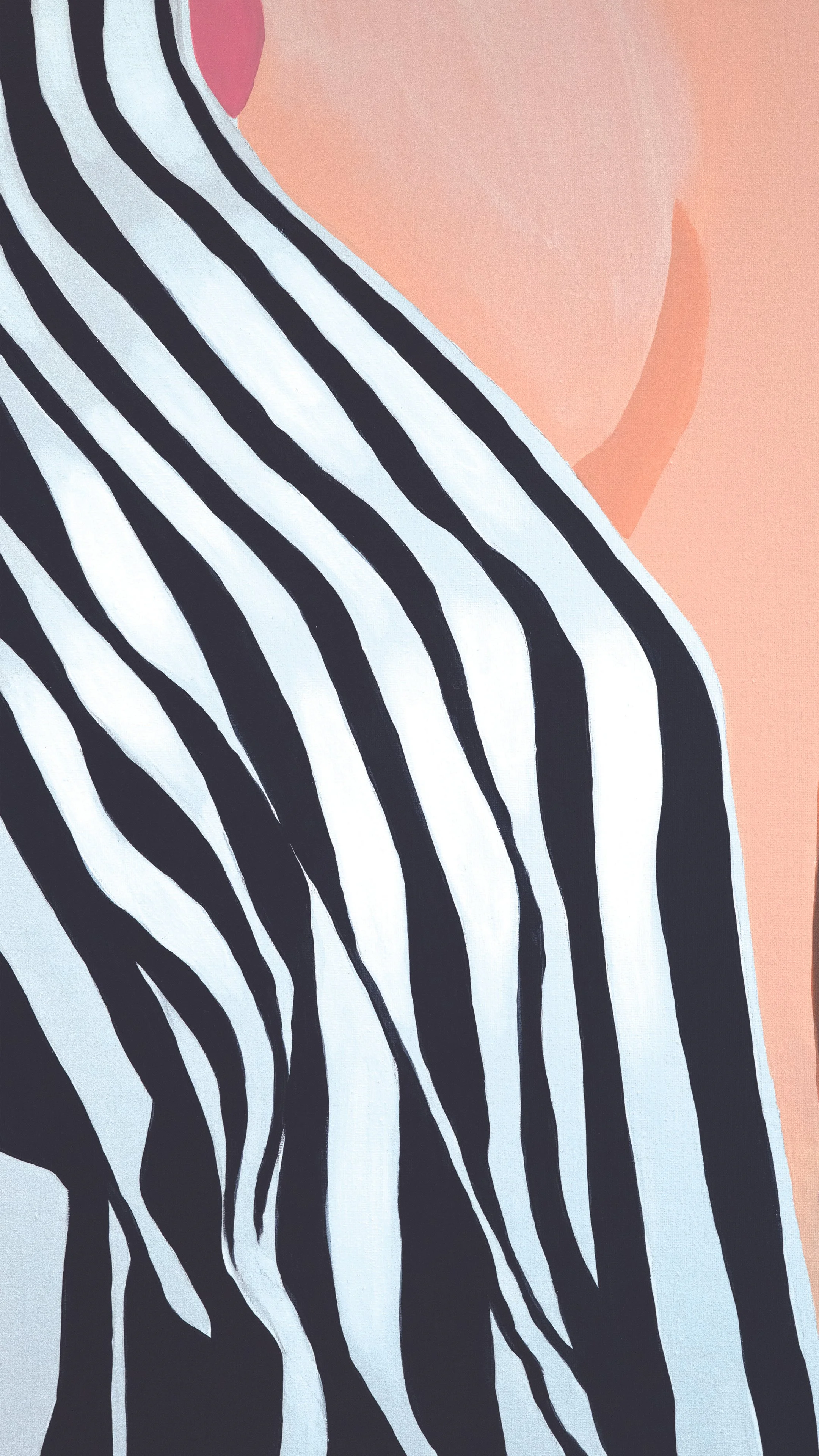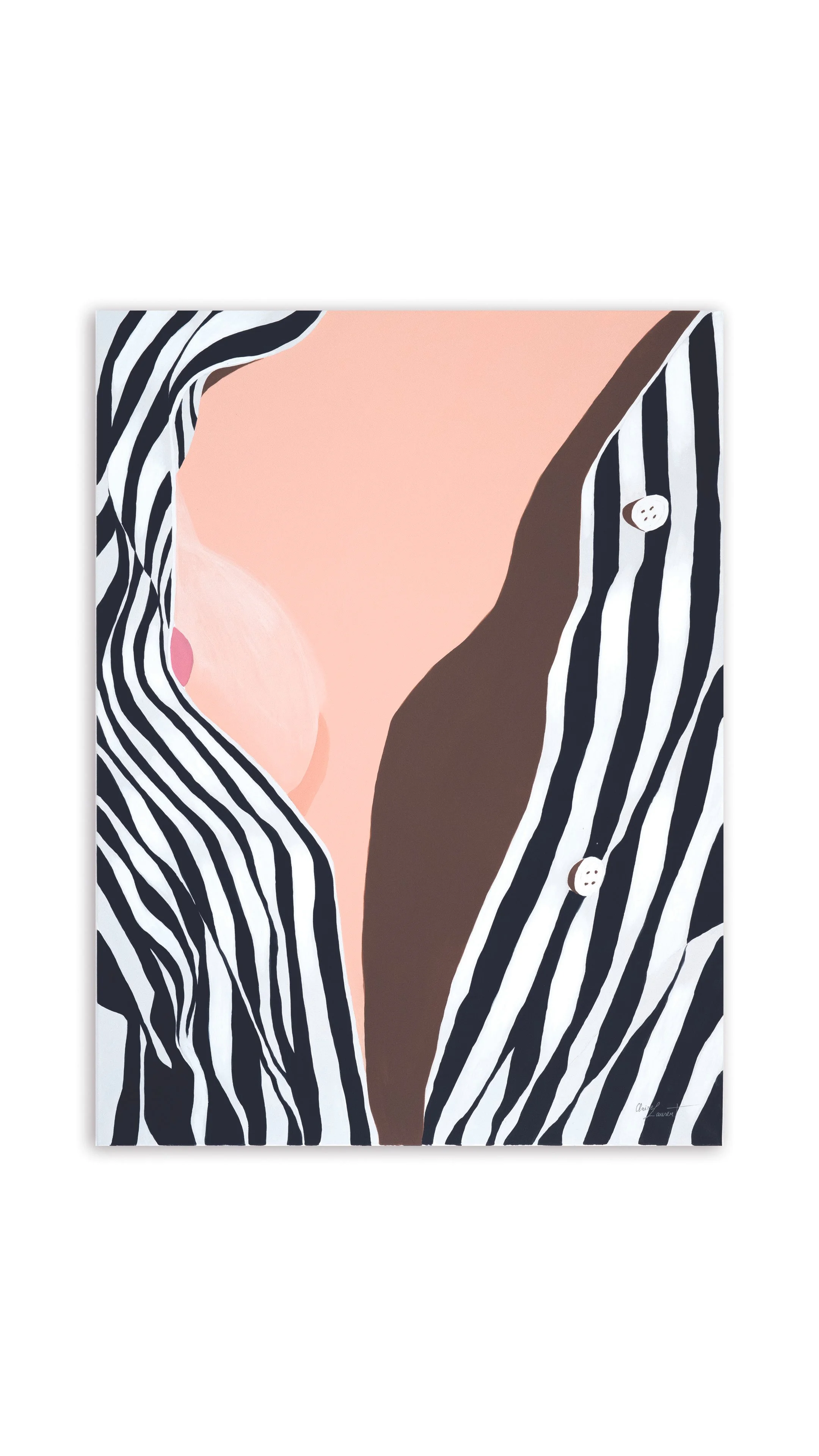 Through this controlled pictorial construction, the artist examines the tension between exposure and discretion. The work reflects her ongoing interest in how form, pattern, and framing can express identity and presence within contemporary visual culture.